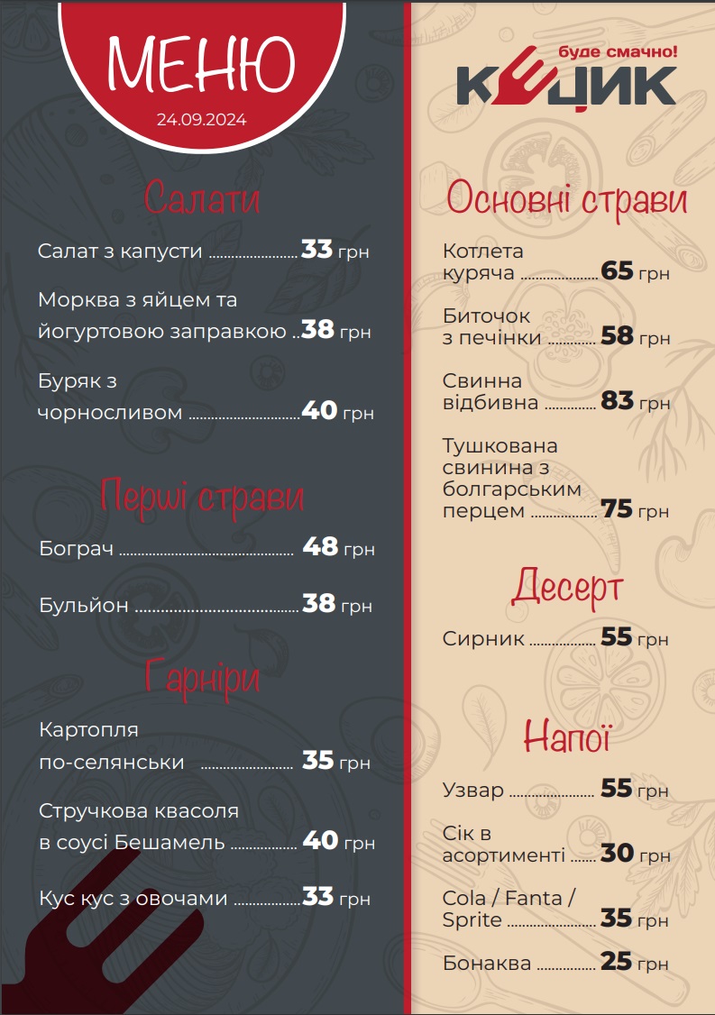 Welcome to Ketsyk, a charming café located on Promyslova St in Lviv, Ukraine. Renowned for its homestyle cooking, the menu is a delightful blend of comforting dishes that evoke nostalgia. Many patrons rave about the quality, with standout items like the famed cutlets, which are consistently described as a "TOPчик" by customers.